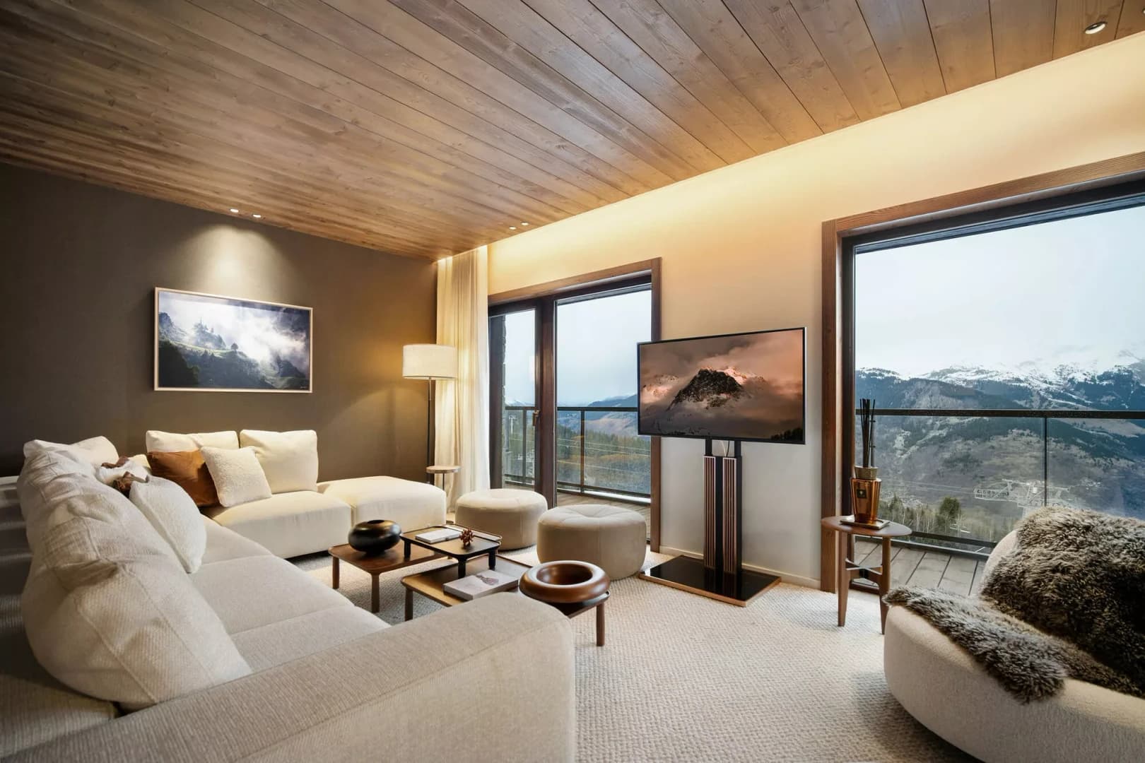 Behind elegant wood-and-glass façades, the residence offers spacious accommodations with a timeless aesthetic, blending traditional chalet architecture with contemporary alpine design.