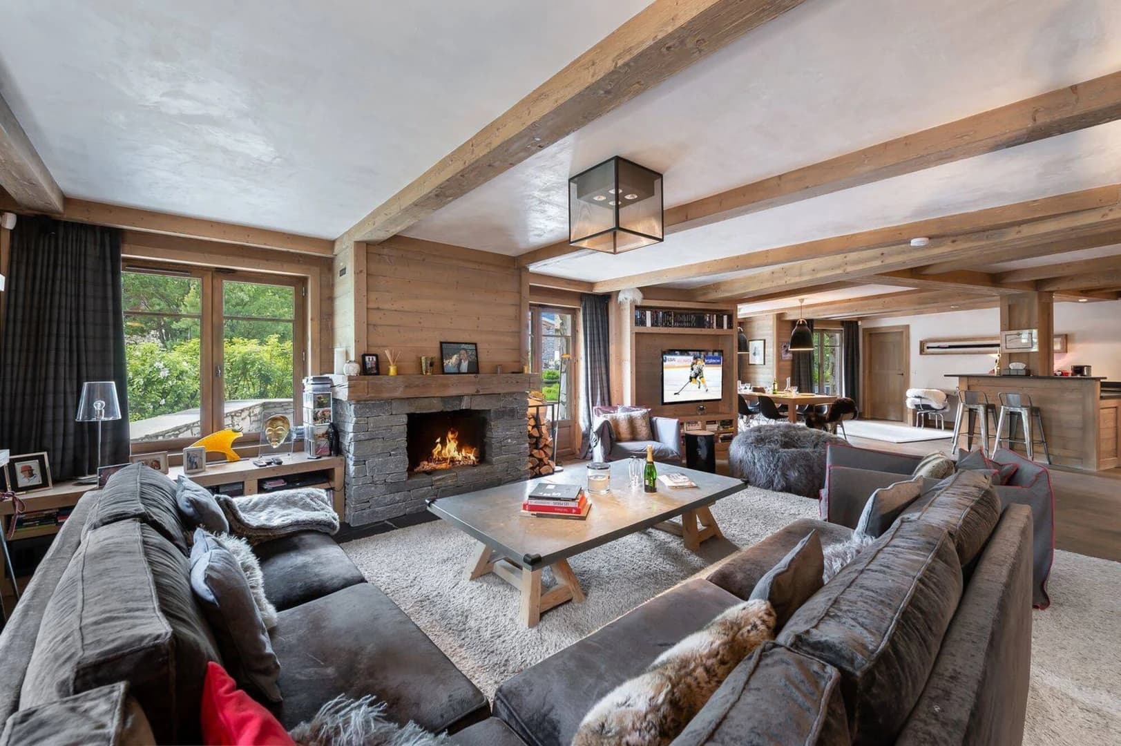 Set in a chalet blending stone and wood, it features five en suite bedrooms.