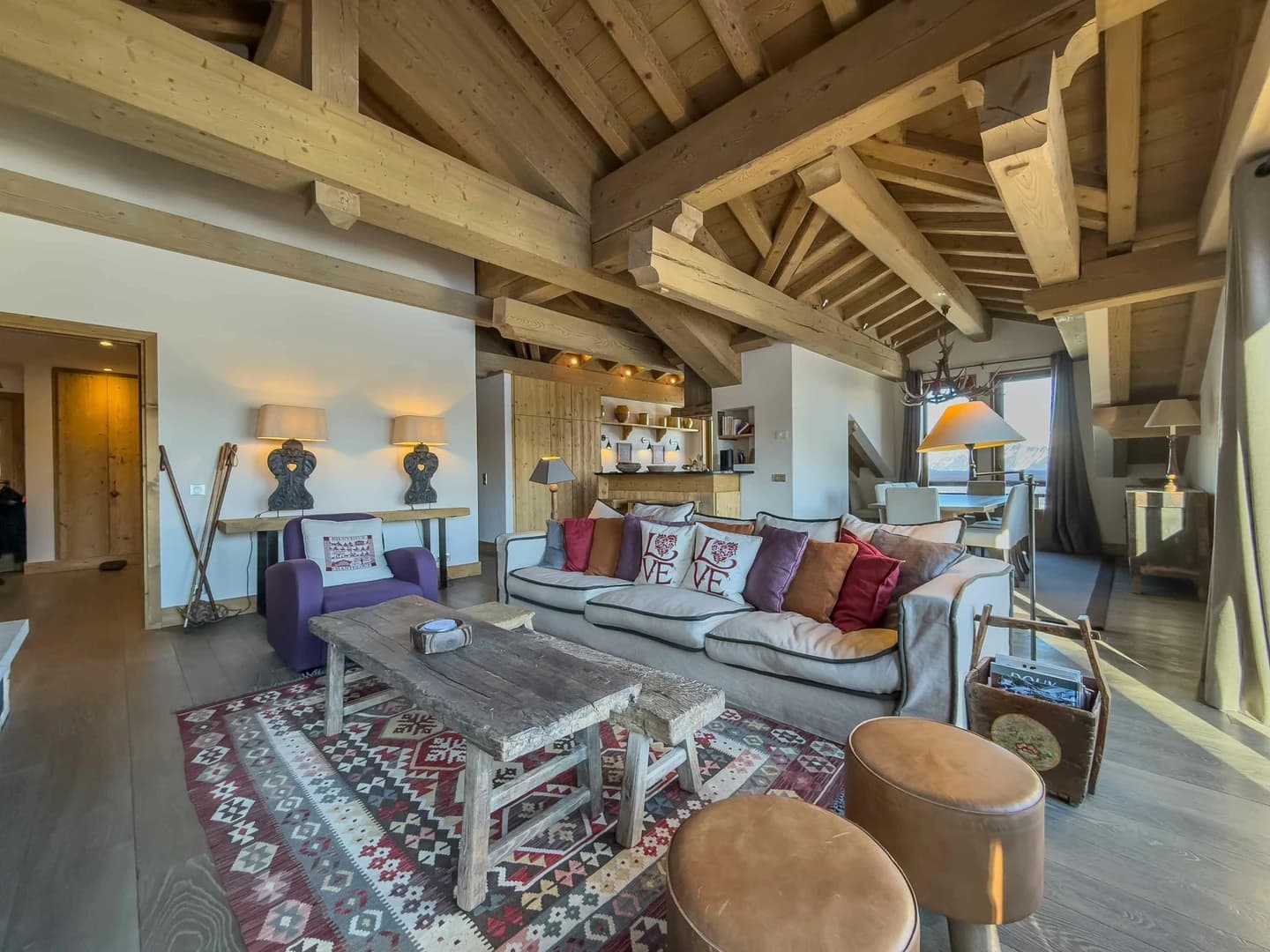 Ideally located in the prestigious Chenus area of Courchevel, Le Chanteloup 4 benefits from a prime position close to the slopes, offering seamless access to the renowned 3 Vallées ski area. With a south-east orientation, the apartment is filled with natural light and opens onto breathtaking panoramic views of the surrounding mountains, an exceptional setting for an unforgettable alpine stay.