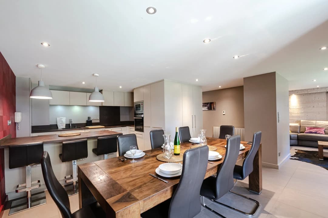 Situated in the heart of Chamonix, Apartment Chesery offers a fantastic base for your mountain getaway. Just 550 meters from the ski slopes and 200 meters from a bus stop, this spacious 100m² apartment comfortably accommodates up to 8 guests. The large open-plan living area, complete with a fully fitted kitchen and living/dining room, leads out to a terrace offering stunning views of Mont Blanc. The apartment includes 2 double bedrooms (one with an ensuite), a mountain bedroom with bunk beds, and a convertible sofa bed in the lounge. After an exciting day on the slopes, unwind in the private sauna, or relax in the cozy living area. The apartment also features a private underground car park for added convenience. This charming apartment is perfect for families or friends looking for a blend of comfort and adventure in Chamonix.