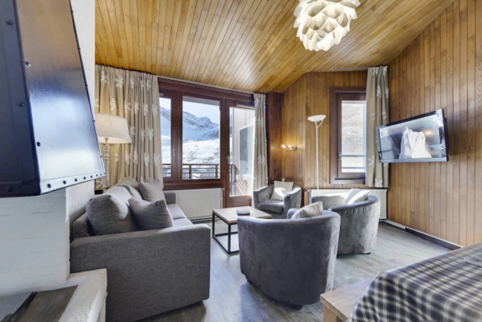 The Curling B apartment is located in the Curling B residence in the Val Claret area of Tignes, offering a peaceful setting just a minute’s walk from Place du Curling and providing near ski-in/ski-out access to the Val Claret snow front. This 77 sqm duplex, situated on the 7th and top floor, ensures both privacy and tranquility. It comfortably accommodates up to 4 adults and 4 children across two double bedrooms—one of which features an en-suite shower room—and a third bedroom equipped with two bunk beds. The apartment also includes two independent bathrooms and two separate toilets for added convenience. On the first level, guests will find a well-equipped compact kitchen, a cozy dining area, and a welcoming living room that opens onto a south-facing balcony with pleasant views. A private ski locker is available on the ground floor of the residence. At 2,127 meters above sea level, Val Claret is the highest hamlet in the Tignes–Val d’Isère ski area and one of its two main hubs. Well-connected by lifts and shuttles, it is also the liveliest part of the resort, offering a wide selection of shops, restaurants, and après-ski venues.