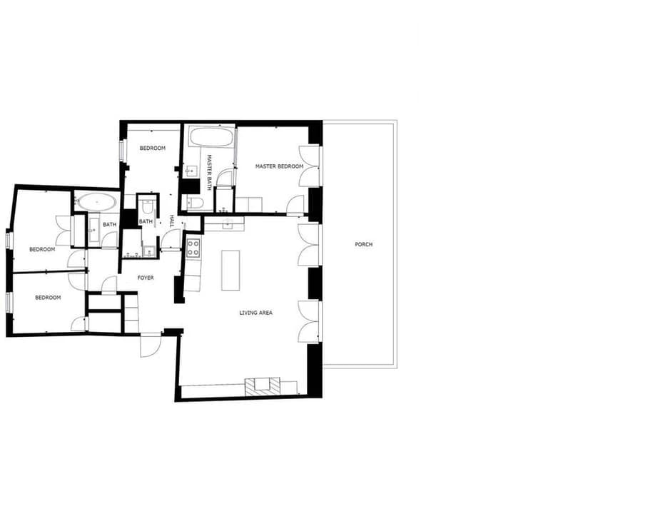 Blending modern and traditional design, the apartment features a spacious open-plan living area with a stone fireplace, ideal for cozy après-ski evenings.