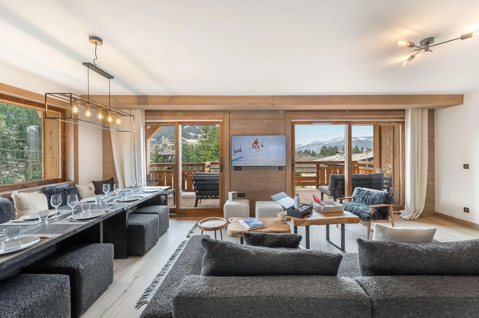 Discover the elegance of Megève at Appartement Ksar A21, a beautifully designed retreat in the heart of Mont d’Arbois. With ski-in/ski-out access just steps from the slopes, this modern apartment offers a warm living area with a fireplace, a fully equipped kitchen, and comfortable bedrooms perfect for relaxing after a day in the mountains.