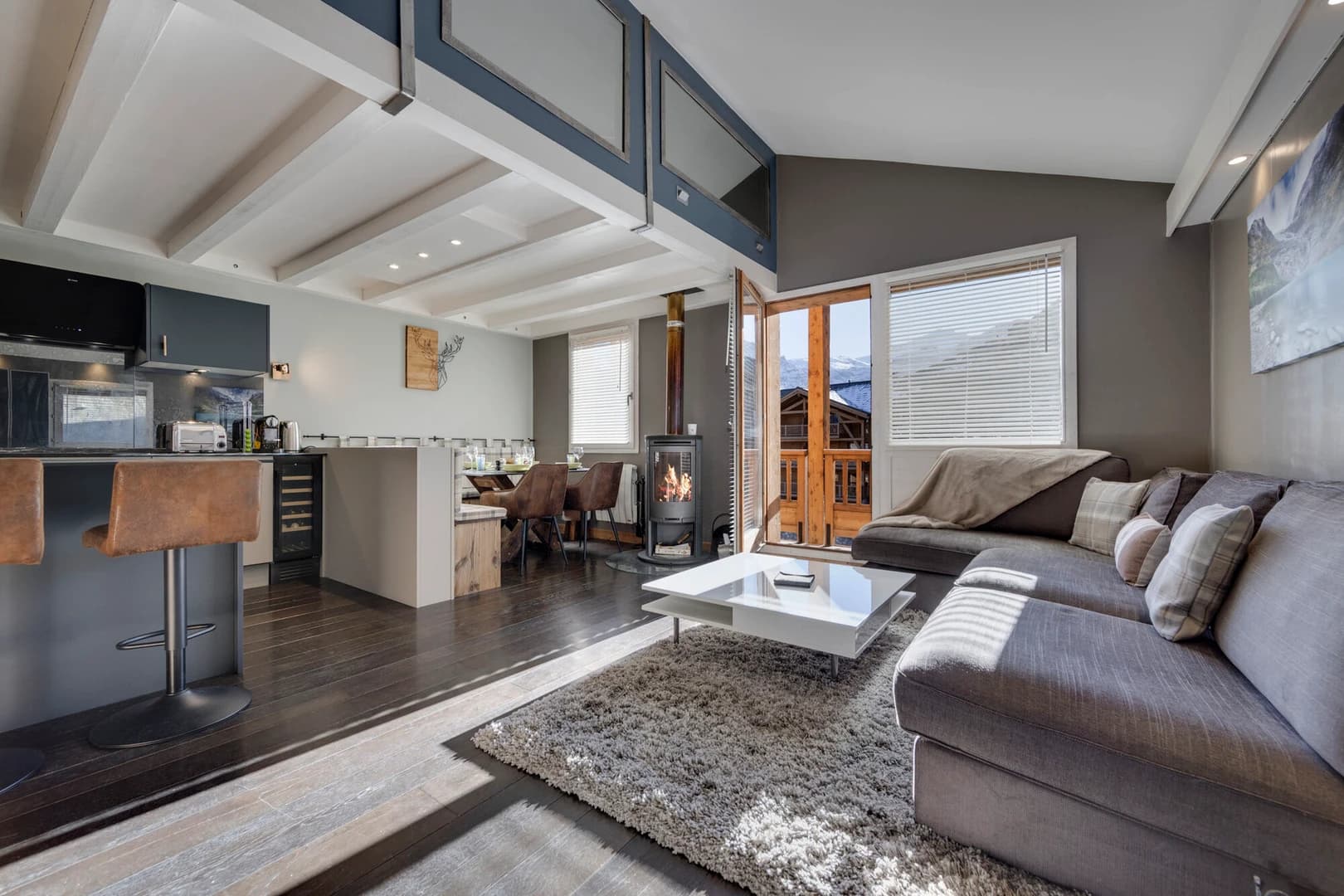 Located at 72 Chemin de Maison Neuve, right at the entrance to Tignes, this beautifully renovated apartment blends modern design with alpine comfort. Perched on the 4th and top floor of the Chalet Maison Neuve residence, it boasts an ideal ski-in/ski-out location, just steps from the slope that leads to the Paquis and Chaudannes chairlifts.