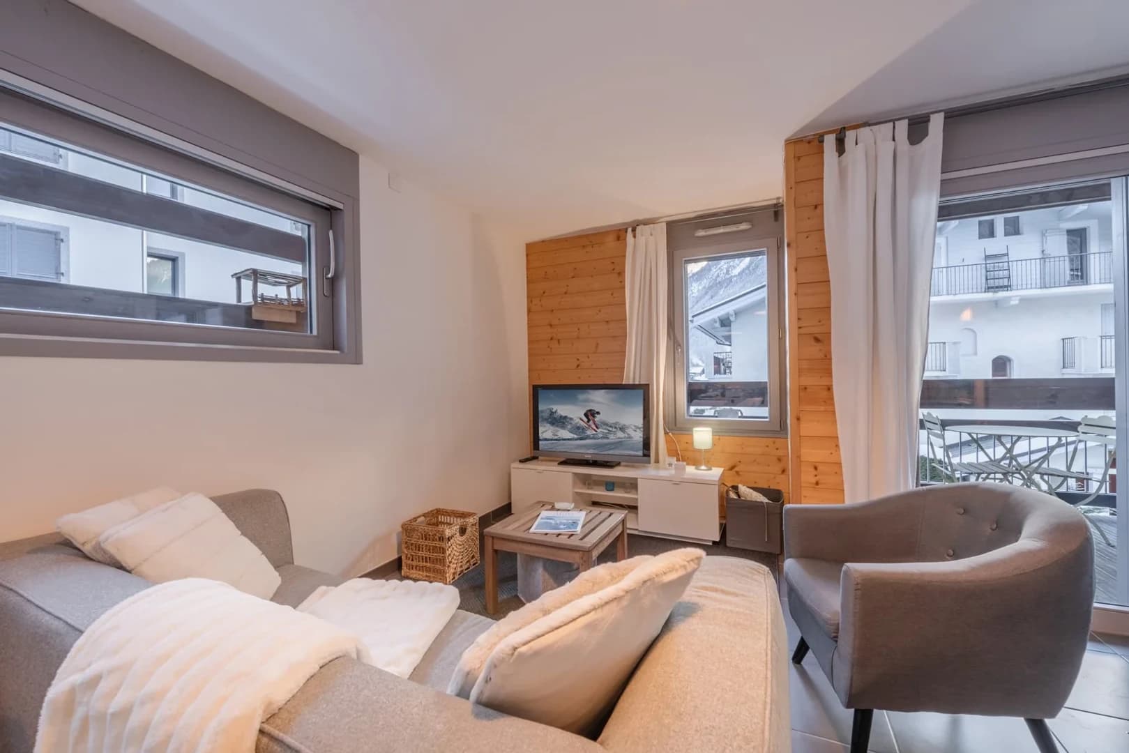 Located just a short 5-minute walk from central Chamonix, this comfortable first-floor apartment (with lift access) offers peace and practicality. It includes two spacious bedrooms—one with a private bathroom—and a bright living room to unwind in.
