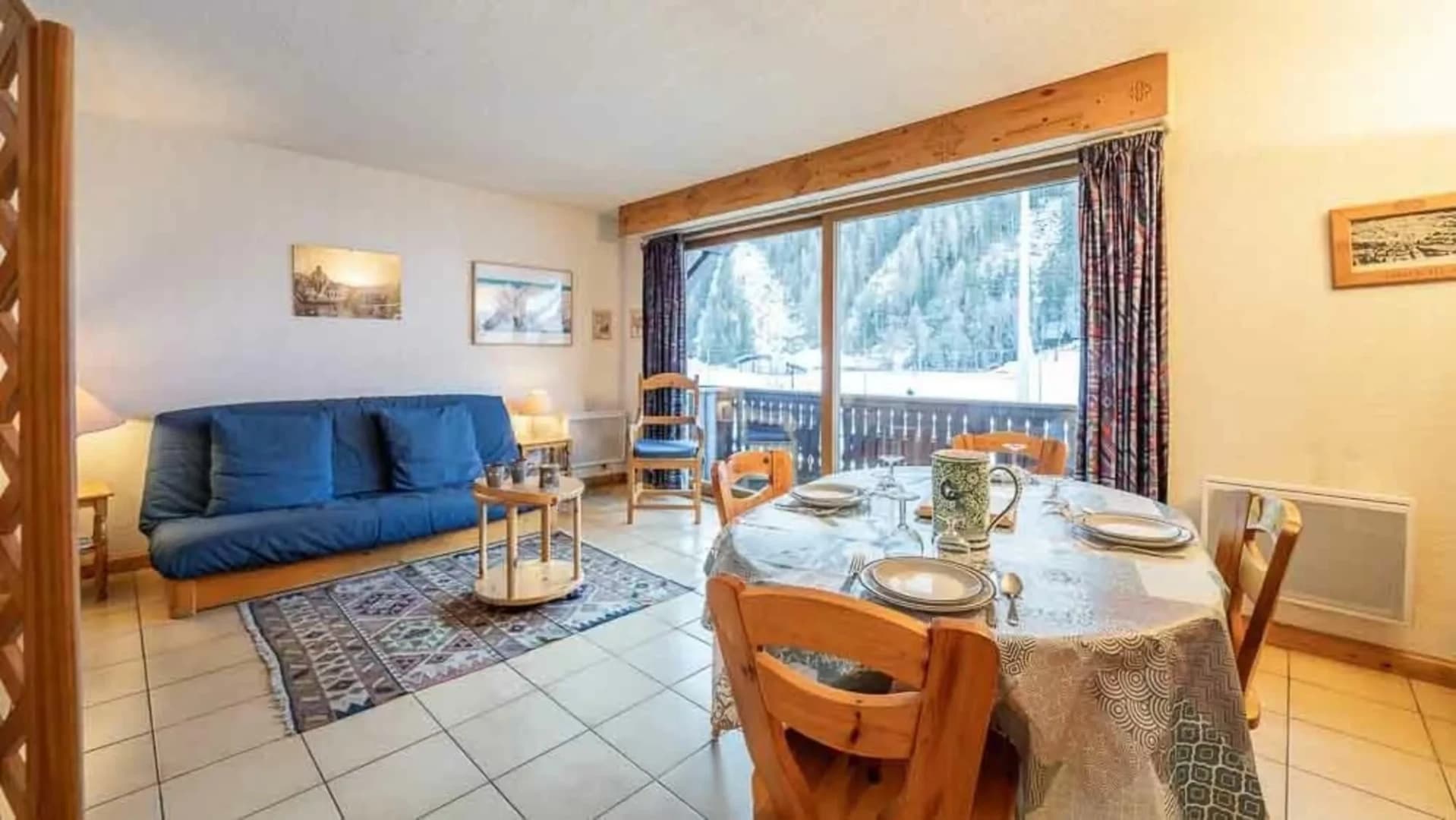 The Mélèzes 5 apartment offers a cozy and functional 50 m² living space, ideal for up to 4 guests. It features a bright open-plan layout with a fully equipped kitchen that flows into the dining area and comfortable living room, perfect for sharing meals and relaxing after a day on the slopes.