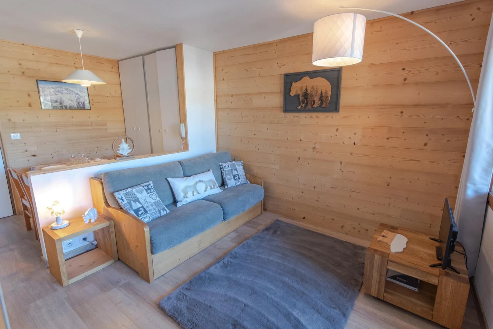 Ours Blanc 737 is a recently renovated 25 m² apartment located on the 7th floor of the Ours Blanc residence, right in the center of Alpe d’Huez. Shops, restaurants, and the ice rink are just a few steps away, while the slopes are only 450 metres from the residence.