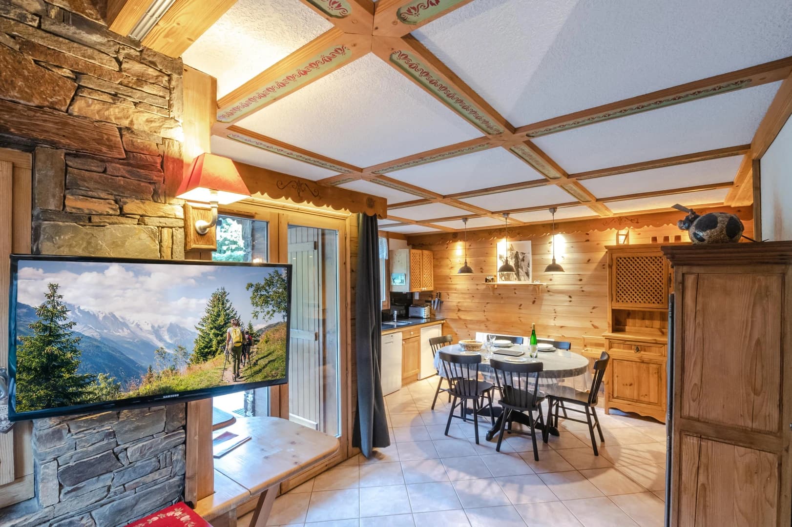 This charming ground-floor souplex apartment is in the peaceful hamlet of Les Bois, just a 5-minute drive from Chamonix. Conveniently, the free shuttle bus stop is only 600 meters away, providing easy access to the ski slopes and local amenities.
