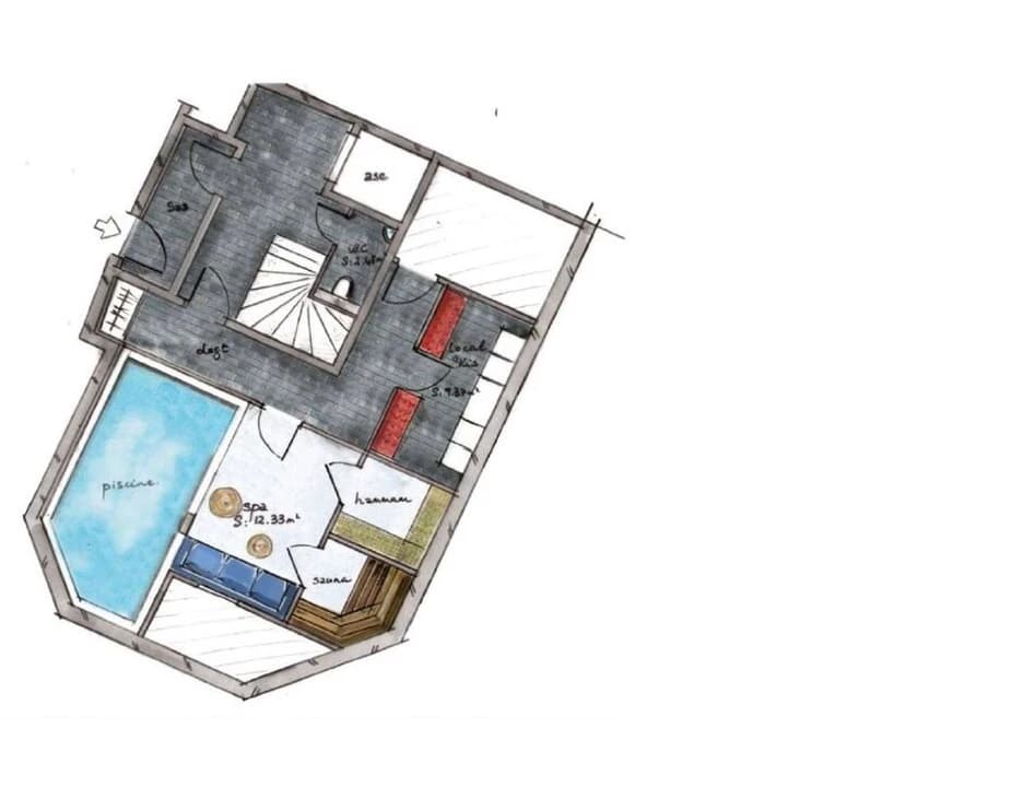 After skiing, unwind in the chalet’s private spa, featuring an indoor pool, hammam, sauna, and massage room. Additional conveniences such as a ski room and an elevator ensure a seamless stay.