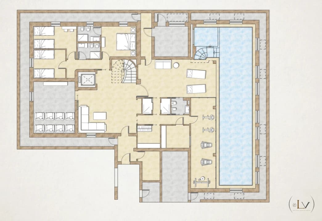 After a day on the slopes, indulge in the chalet's exquisite wellness area, featuring a 20-meter heated indoor pool with a jacuzzi and waterfall feature, a sauna, multi-sensory showers, a massage room, and a fully equipped fitness area. For moments of leisure, retreat to the soundproof cinema room with a large screen or enjoy personalized beauty treatments within the comfort of your private space.