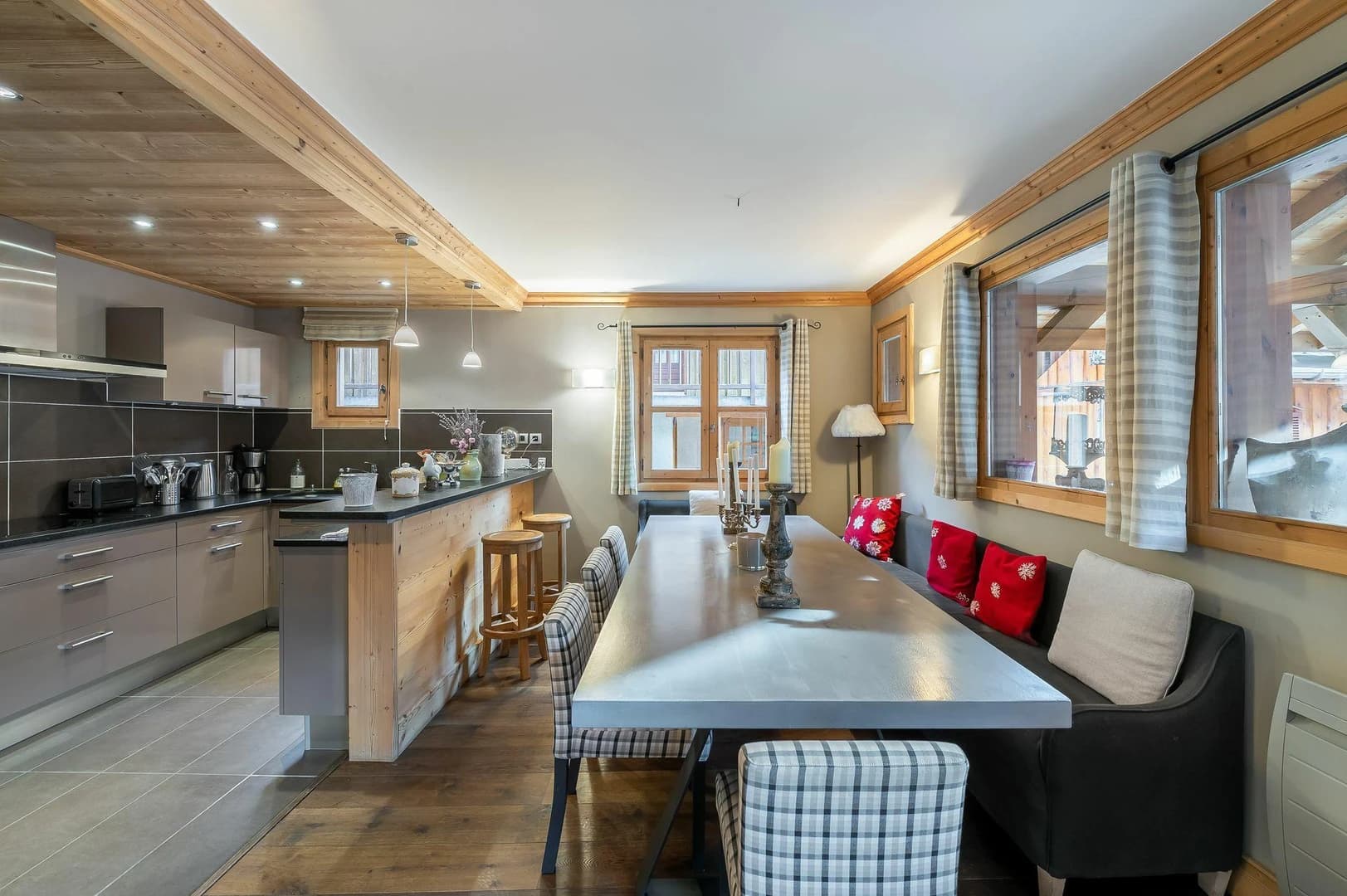 Ideally located at the crossroads of the resort’s shops and restaurants, this spacious semi-detached chalet offers a warm and welcoming atmosphere in a peaceful, mostly pedestrian street.