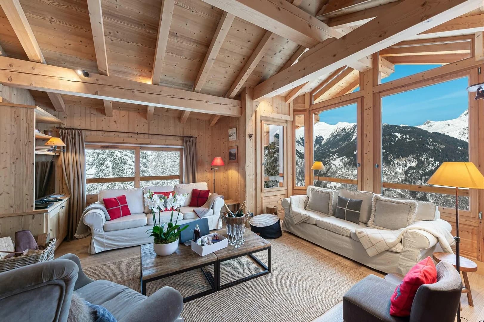 Its expansive bay windows open up to breathtaking views of the Tarentaise Valley, while its prime location offers close proximity to the center of Courchevel Village, the snow front, and ski lifts.